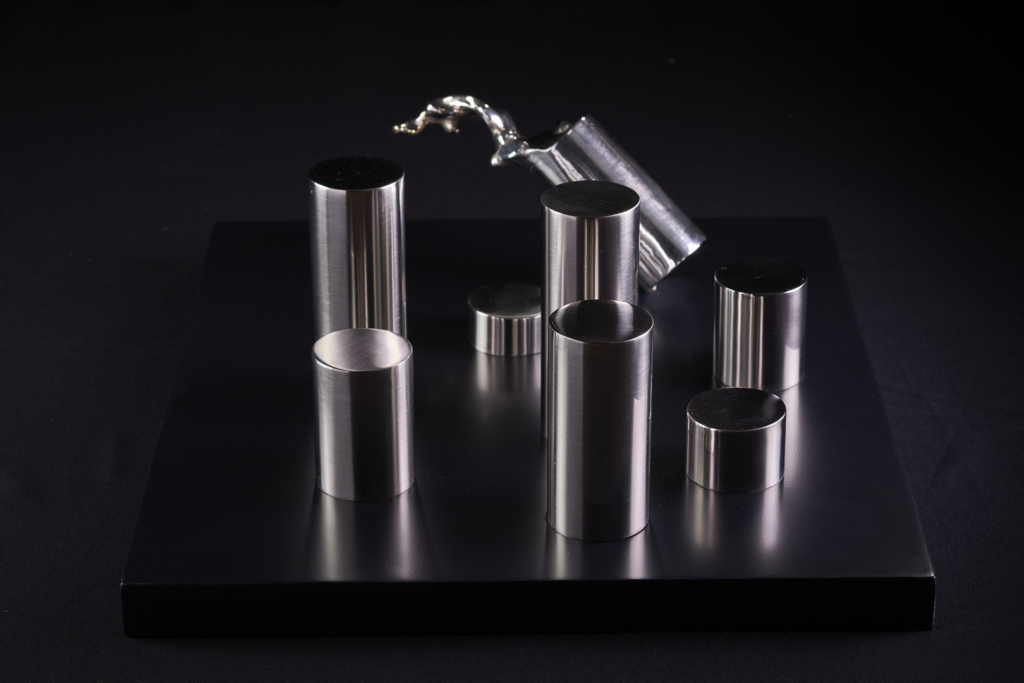 2024 / metal satinado y pintado / 20 x 52 x 46 cm