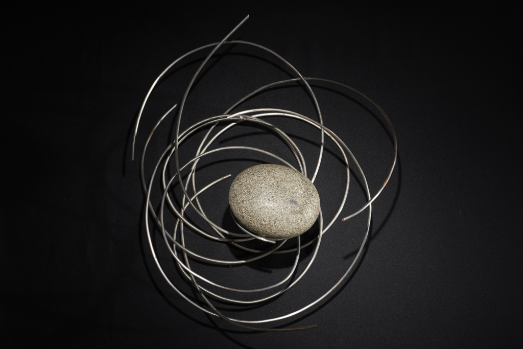 2020 / metal pulido y piedra de río / medidas variables